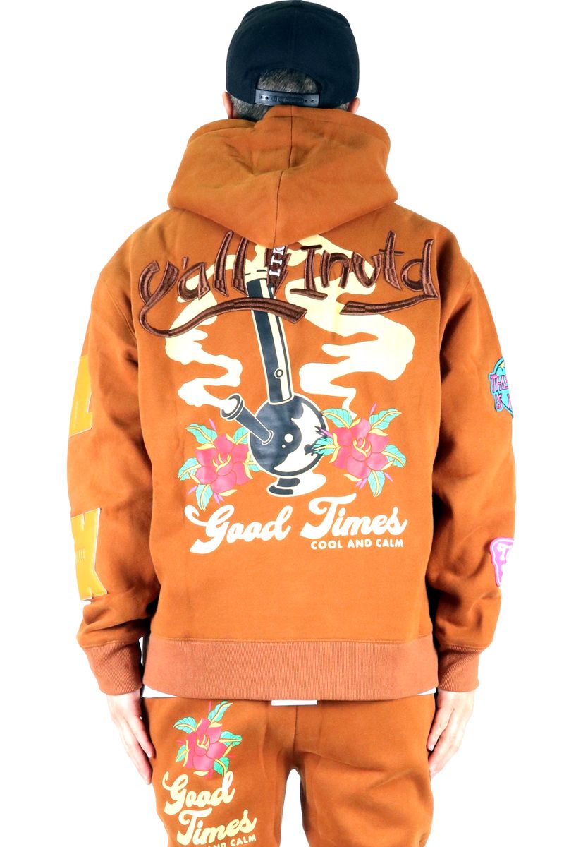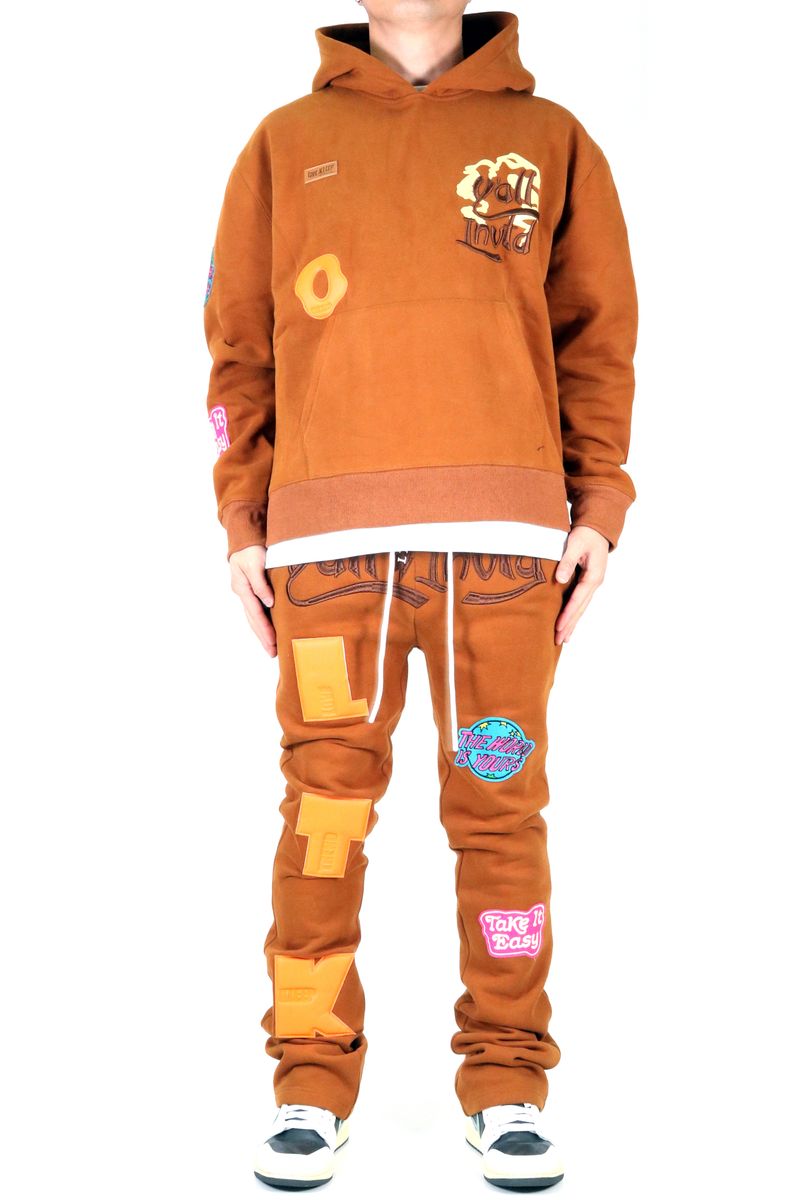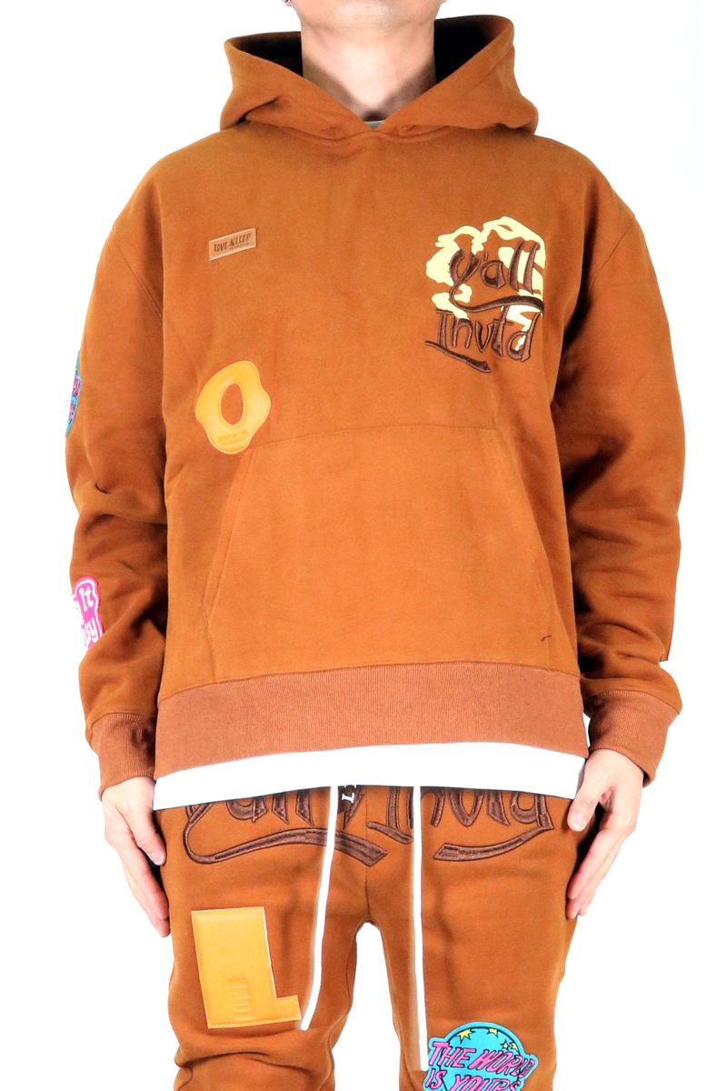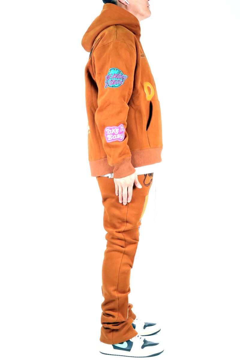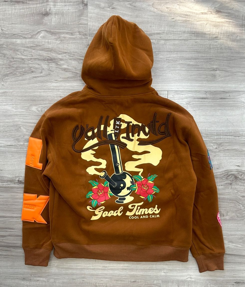 Indulge in luxury with the Love To Kleep {GEORGE(BROWN)} hoodie. Made with heavy weight (360g) brushed fleece, this pullover features chenille patches on the sleeves and a puffy PU letter patch. The glow in the dark print adds a touch of exclusivity. Designed by L.T.K and imported for you.
